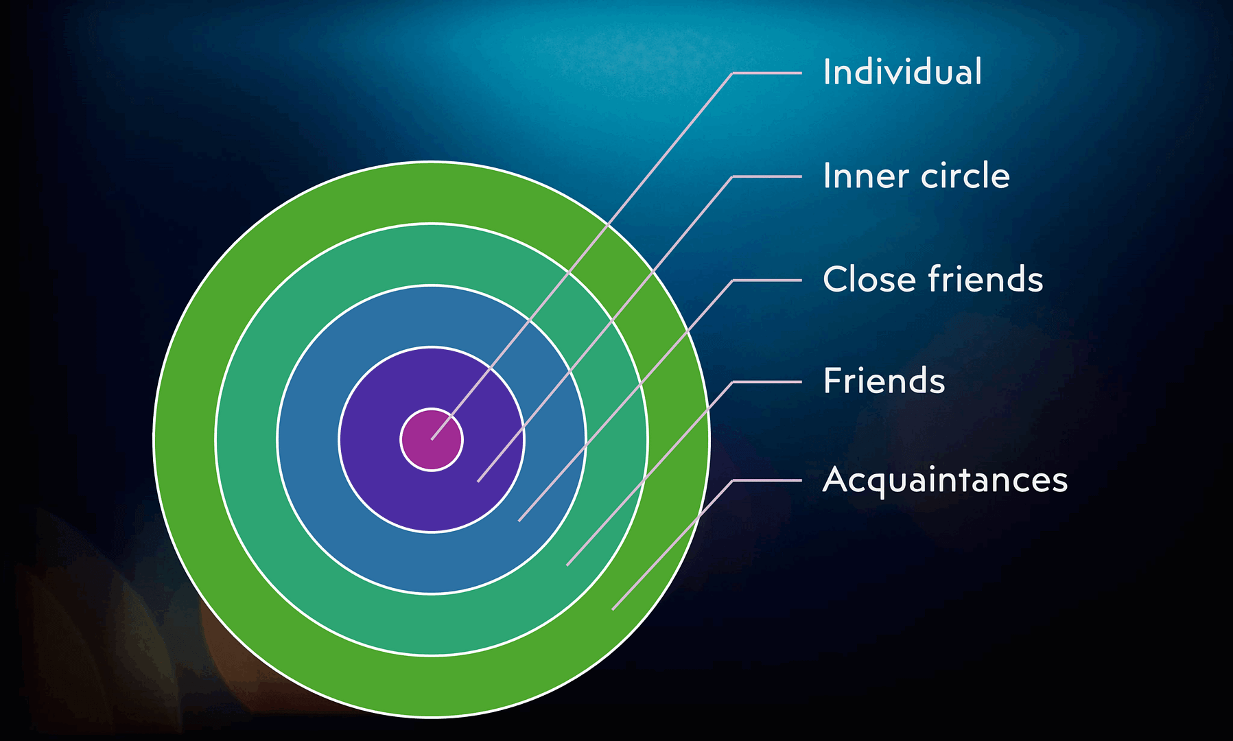 Finally, acquaintances make the outer circle. We are friendly, but not really friends.