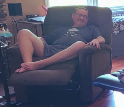 We spend a lot of time at home. Steve and Sheila made the decision to move within a few months of his diagnosis. Our house in Minnesota was not very accessible, so we had to make a change. We decided to move closer to Steve’s parents in Kentucky. The house we purchased in Frankfort has everything we need on the first floor and those floors are wood which is perfect for the power chair. We added some smarts and made some changes after we moved into the house.